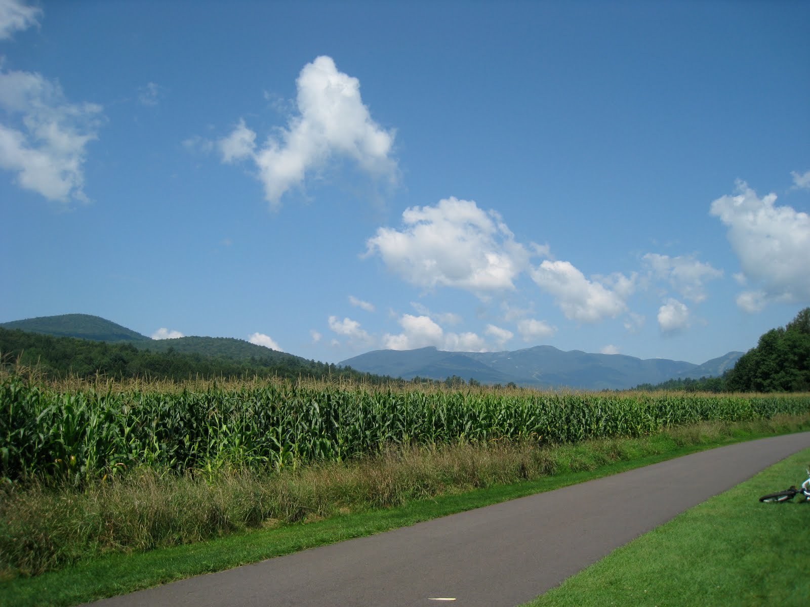 On Tuesday we had originally planned to go to Montreal, but after two days of hiking and some rainy weather in the forecast for later in the week, we decided to rent bikes and spend the morning tackling the 10 mile round trip bike trail in town. The bike trail was paved and was pretty easy to navigate, although going over some of the wood slat bridges was a little scary because they were so narrow. Our rental was for a half day so we took our time, spending about 2 hours or so riding the entire trail from start to finish, making a few stops in between.